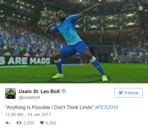 The Developers of Pro Evolution Soccer Series has announced that Usain Bolt, The Fastest Athlete, will be the latest ambassador for PES 2018. As Well as an in-game player unlockable at exclusively for myClub.